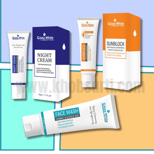 Gluta White T-Bundle (Night Cream+Sunblock+Facewash)Regular price Rs.3,999.00 PKRRegular priceUnit price / perRs.4,499.00 PKRSale price Rs.3,999.00 PKRSale